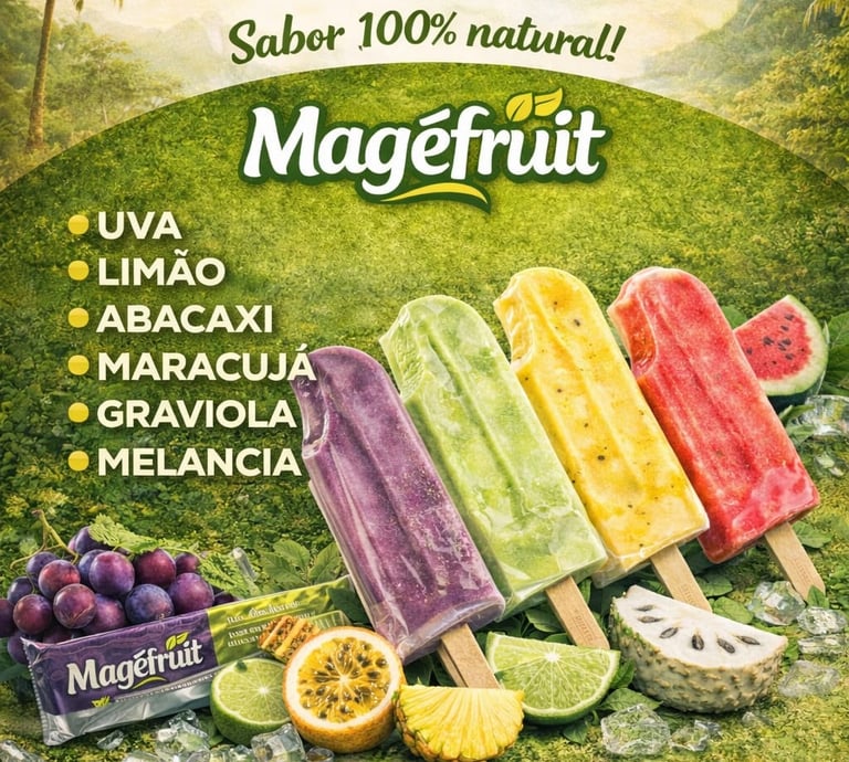 Picolés refrescantes feitos com frutas naturais e sem conservantes.